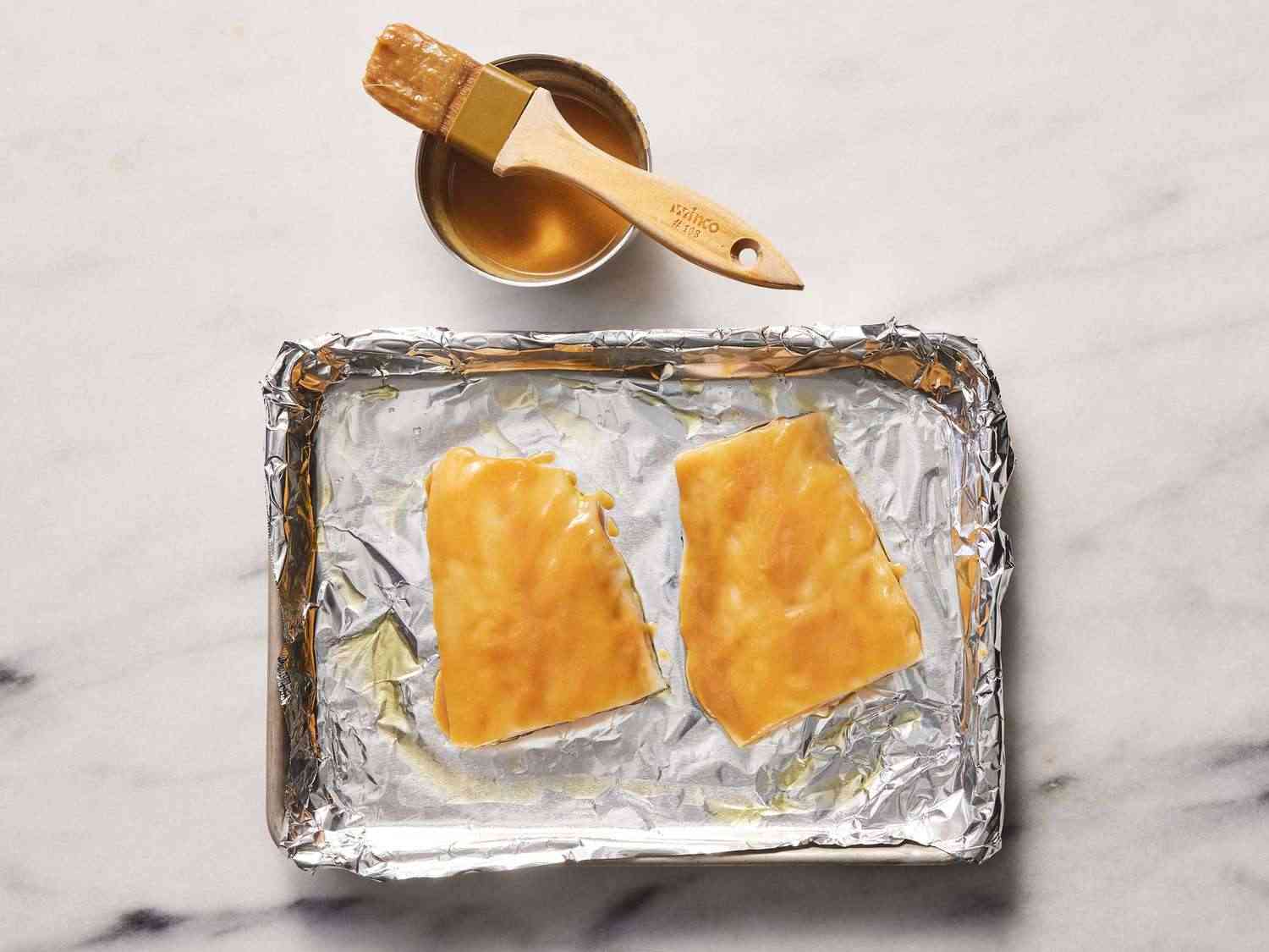 - Step 4:Place cod fillets on the prepared baking sheet. Brush fillets all over with cooled miso mixture. Marinate at room temperature for 15 to 20 minutes. Dotdash Meredith Food Studios