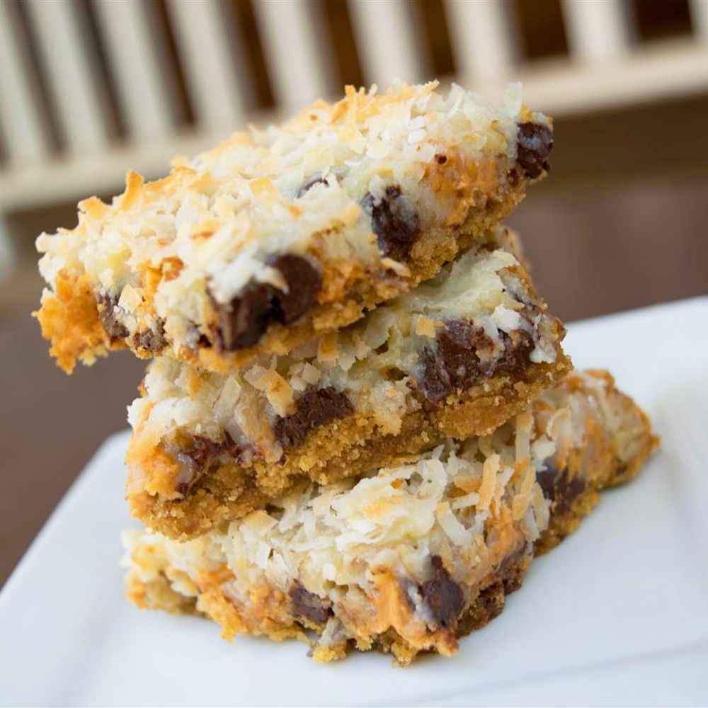 - Step 3:Spread graham cracker crumbs evenly over bottom of pan. Layer chocolate chips, butterscotch chips, and walnuts over crumbs. Pour condensed milk over walnuts and sprinkle with coconut.